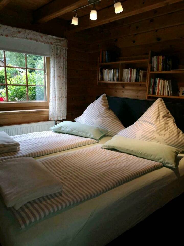 Unser Häuschen ist ausgestattet mit einem Schlafzimmer für 2 Personen, einem kleinen aber liebevoll renoviertem Badezimmer mit Dusche, kommodigem Wohnzimmer mit Bollerofen und Magenta TV, extra Zimmer mit großem Kleiderschrank und einer gut ausgestatteten Küche.